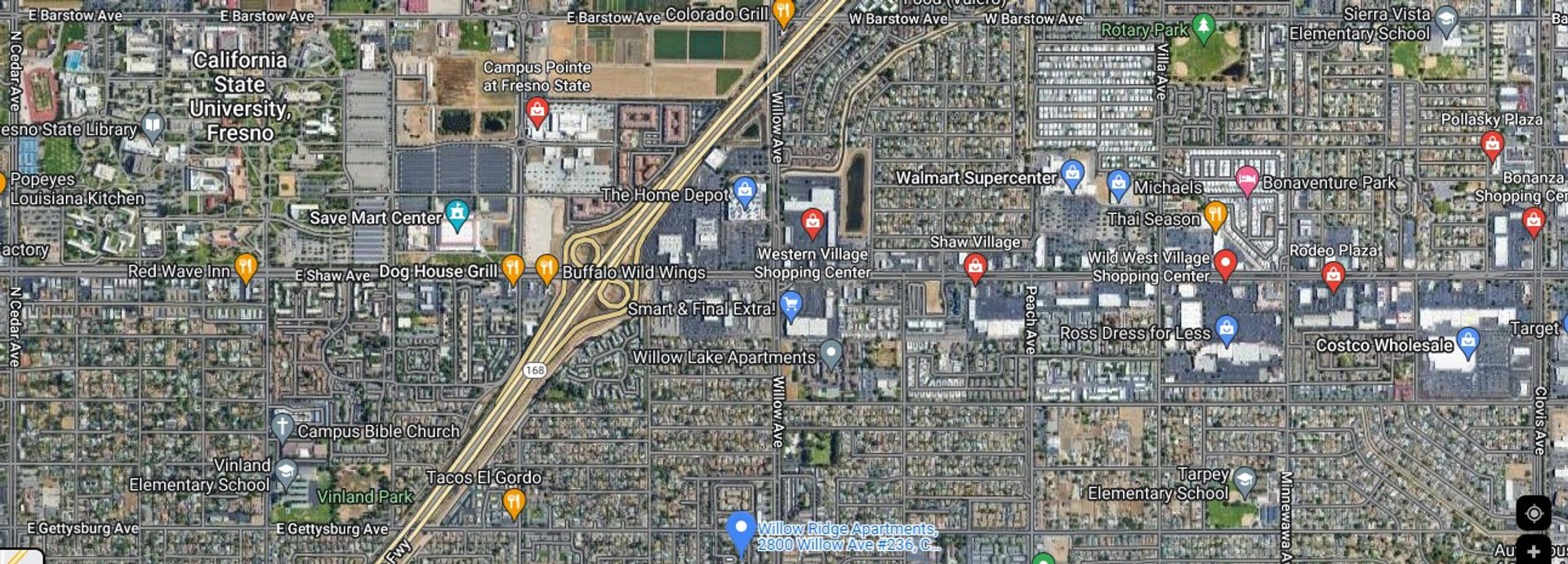 One block to Shaw Ave and easy access on and off the 168 East and West